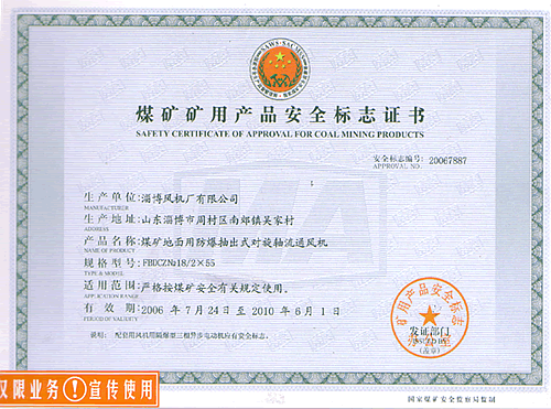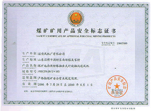 產(chǎn)品均獲機械部、煤炭部和煤科總院頒發(fā)的生產(chǎn)許可證、鑒定證書和MA安全標(biāo)志。K系列礦用節(jié)能風(fēng)機獲國家星火項目銀獎和冶金工業(yè)部科技進步二等獎、省科技成果一等獎等榮譽稱號。